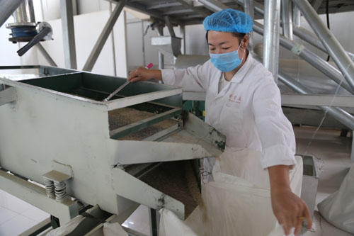 7月22日,靜樂縣華青藜麥產(chǎn)品開發(fā)有限公司的員工在篩選藜麥產(chǎn)品。這個綜合性農(nóng)業(yè)開發(fā)企業(yè),堅持走“企業(yè)管理+種植基地”的運(yùn)作模式,積極推動藜麥、小雜糧等規(guī)?;N植經(jīng)營,成為當(dāng)?shù)貛ьI(lǐng)農(nóng)民致富的龍頭企業(yè)。(閆曉梅 攝)