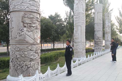 10月9日,原平市民在范亭文體廣場(chǎng)聚落的柱式雕塑前觀看愛國(guó)名將續(xù)范亭、東晉名士郝隆等16位名人紀(jì)念雕像。近年來(lái),該市著力打造文化強(qiáng)市,利用柱式雕塑像繪制歷史文化名人、抗日英雄等群體形象,營(yíng)造濃濃的文化氛圍。(褚震 攝)