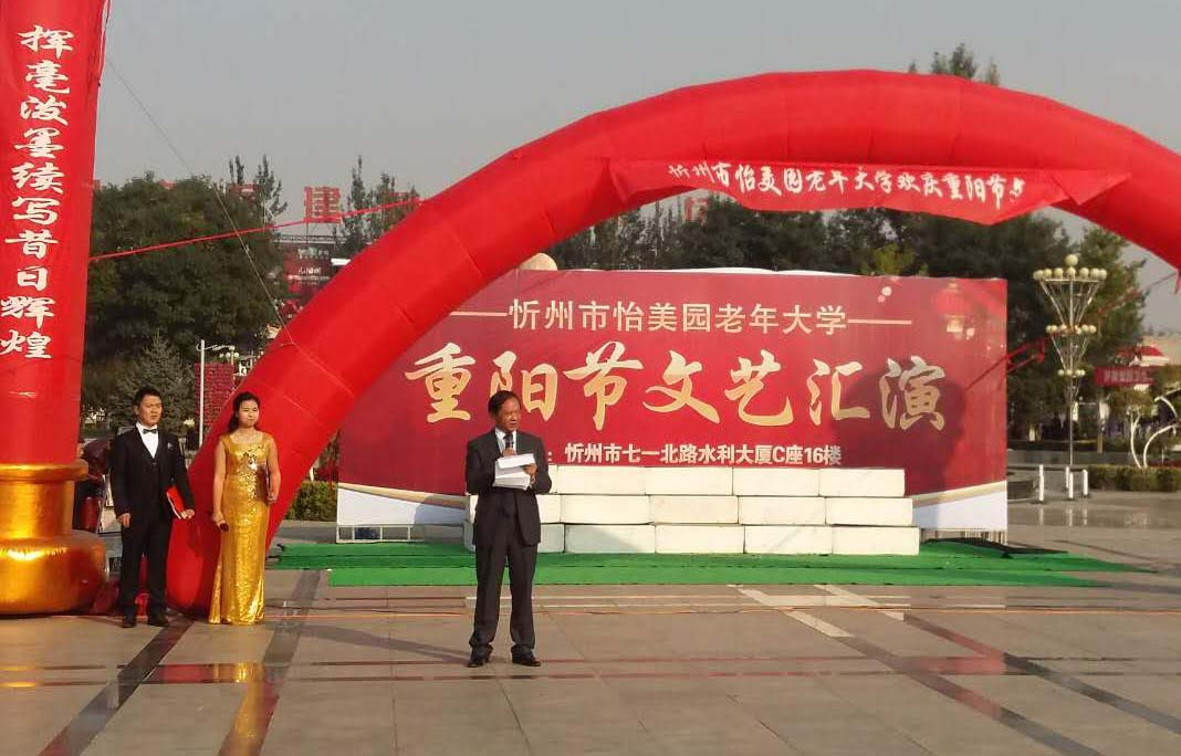 伴隨著怡美園老年大學(xué)全體學(xué)員共同表演的舞蹈《歡聚一堂》,忻州市怡美園老年大學(xué)校長鄧九高代表該校全體師生對(duì)老年朋友們致以節(jié)日的慰問,在表達(dá)了提倡繼續(xù)發(fā)揚(yáng)尊老愛老的中華傳統(tǒng)美德,經(jīng)營好自己的家庭,盡孝心、促和諧,為構(gòu)建美好和諧的社會(huì)氛圍貢獻(xiàn)力量的同時(shí),也對(duì)年輕人寄以希望,享受生命,感恩陽光。