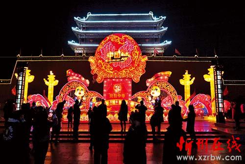 距離元宵節(jié)還有幾天時(shí)間,但忻州城區(qū)北城門樓的南北廣場(chǎng)上已展開吉祥喜慶的“中國(guó)夢(mèng)”與“錢袋子”大型燈展,吸引眾多市民前來觀賞。(魯明強(qiáng) 攝)