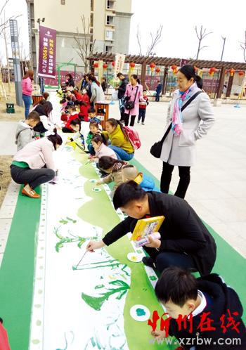 3月11日下午,泛華國(guó)際公館內(nèi)的植樹(shù)節(jié)百米長(zhǎng)卷繪制活動(dòng)吸引了近百名小朋友和家長(zhǎng)的參與,他們用手中的畫(huà)筆在卷紙上“種”下了一棵棵樹(shù)。這種涂鴉式的活動(dòng)受到了家長(zhǎng)們的稱(chēng)贊,一位王姓家長(zhǎng)告訴記者“:我家孩子今天玩瘋了,她沒(méi)見(jiàn)過(guò)這么大的畫(huà)卷,一直畫(huà)了好幾棵樹(shù)呢,而且通過(guò)親身參與,想必她會(huì)對(duì)植樹(shù)節(jié)留下深刻的印象,我準(zhǔn)備等她稍長(zhǎng)大一些的時(shí)候,帶她真正去種棵樹(shù),培養(yǎng)她的環(huán)保理念?!眻D為孩子和家長(zhǎng)們?cè)凇胺N”樹(shù)實(shí)習(xí)記者 許凈 攝