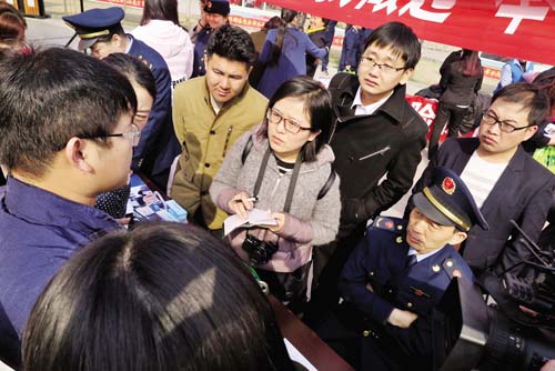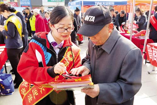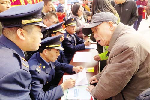 3月15日,忻州城區(qū)體育廣場上以“網(wǎng)絡誠信消費無憂”為主題的3·15國際消費者權益日宣傳活動火熱進行?;顒蝇F(xiàn)場,各部門和企業(yè)通過發(fā)放宣傳資料、設立咨詢臺、現(xiàn)場受理群眾投訴舉報、提供服務等方式,宣傳《消費者權益保護法》、《反不正當競爭法》、《無照經(jīng)營查處辦法》等法律法規(guī)以及食品藥品安全、識假辨假等各類知識,吸引了眾多群眾積極參與。受理投訴臺前,陸續(xù)有消費者前來投訴,且有不少年輕人,所反映的問題既有涉及家具、汽車等金額較大的線下消費活動,也有通過電商平臺進行的線上交易。市工商局、消費者協(xié)會的工作人員將消費者投訴的問題一一記錄在冊,并表示會盡快調查處理。本版圖片攝影 魯明強 王 菲