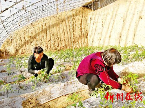 冷風(fēng)呼嘯,五臺(tái)縣陽(yáng)白鄉(xiāng)的室外氣溫已到了零下,然而,大棚里高達(dá)20多度的溫度給了西紅柿苗一個(gè)溫暖的生長(zhǎng)環(huán)境,農(nóng)民們正在棚里精心打理西紅柿苗,棚里棚外儼然“兩重天”。得益于溫室大棚,農(nóng)民能在不適宜蔬果生長(zhǎng)的氣候下種植蔬果,隨著大棚種植技術(shù)的成熟,大棚蔬果的產(chǎn)量和質(zhì)量逐步提升。大棚種植帶動(dòng)了當(dāng)?shù)氐木蜆I(yè)和經(jīng)濟(jì)發(fā)展,給農(nóng)民帶來(lái)新的致富希望。(王陽(yáng) 攝)