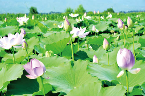 本報訊 8月8日下午,筆者深入代縣聶營鎮(zhèn)西段景村北滹沱河畔的祥瑞種植專業(yè)合作社,一下子被該專業(yè)合作社開發(fā)種植的5畝荷花觀賞帶所吸引。步入荷塘棧道,觀賞那亭亭玉立、含苞綻放的荷花,立刻給人一種賞心悅目、如入仙境的感覺。據(jù)理事長孟歲祥介紹,該專業(yè)合作社聯(lián)合5戶農(nóng)民種植水稻200畝,建有魚塘3座,養(yǎng)殖了金魚、鯉魚、草魚等,3年以來已支付農(nóng)民土地補償費和用工工資70多萬元,其目的就是將滹沱河邊村莊打造成江南水鄉(xiāng),讓人們來到西段景村品嘗美味佳肴,觀賞荷塘月色。據(jù)了解,荷花盛開時節(jié),每天都有成群結隊的人們聞訊趕來,一睹蓮花之美。(石俊文 劉睿)