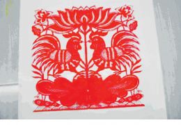 梁盛萍1973年生人,多年從事剪紙藝術(shù)的教學(xué)、培訓(xùn)、研究、搜集整理與創(chuàng)作。農(nóng)歷丁酉雞年到來之前,她就精心創(chuàng)作了許多關(guān)于吉祥雞的剪紙作品,作為賀新春的禮物送給了親朋好友和一些單位。