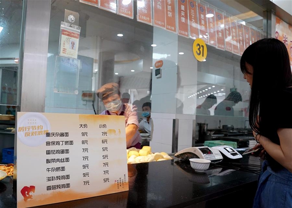 上海交通大學(xué)的食堂的各類面條實行大份、小份供餐。9月1日起,上海交通大學(xué)的學(xué)生開始分批、錯時到校開學(xué)。開學(xué)后,學(xué)校食堂加強(qiáng)節(jié)約糧食、光盤行動的宣傳,并采取多項措施引導(dǎo)師生員工文明用餐,杜絕浪費(fèi)。