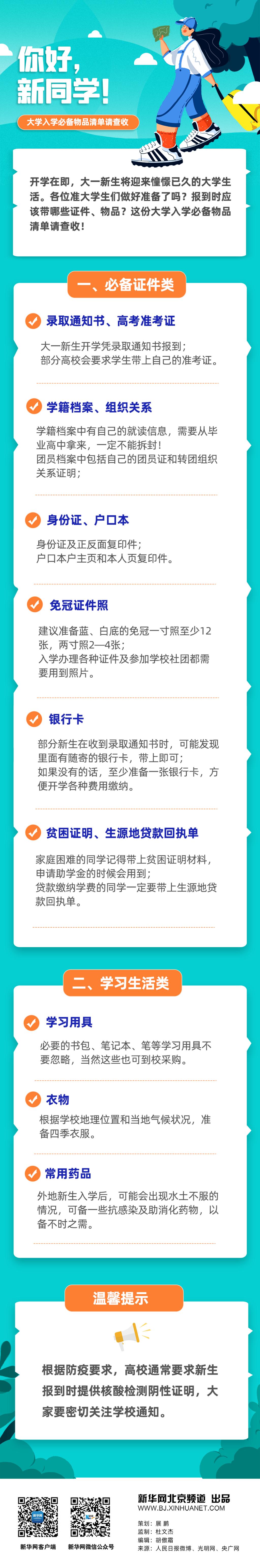 你好,新同學(xué)!大學(xué)入學(xué)必備物品清單請查收