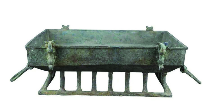 到商周時(shí)期,隨著生產(chǎn)力的進(jìn)步和生產(chǎn)資料的豐富,燒烤的方法也開始升級(jí),烤肉有了專門的稱法“炙”,《禮記》記載:“炙,貫之火上也。”也就是把肉串起來(lái)放在火上燒。不過那時(shí)候的燒烤是貴族專供,也是祭祀用品,比如在戰(zhàn)國(guó)早期的曾侯乙墓中,曾出土過一件燒烤器,由上盤下爐組成,爐作淺盤形,敞口平底,下有三足,出土?xí)r爐內(nèi)尚有十幾塊未燒過的木炭,曾侯乙的日常菜譜中多半也有烤肉這么一道菜。