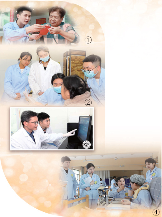 圖④:長沙民政職業(yè)技術學院智慧健康養(yǎng)老教師團隊成員、主管護師謝海艷(右三)在實訓室給學生講授老年人生活照護技術。人民日報 記者 王云娜攝