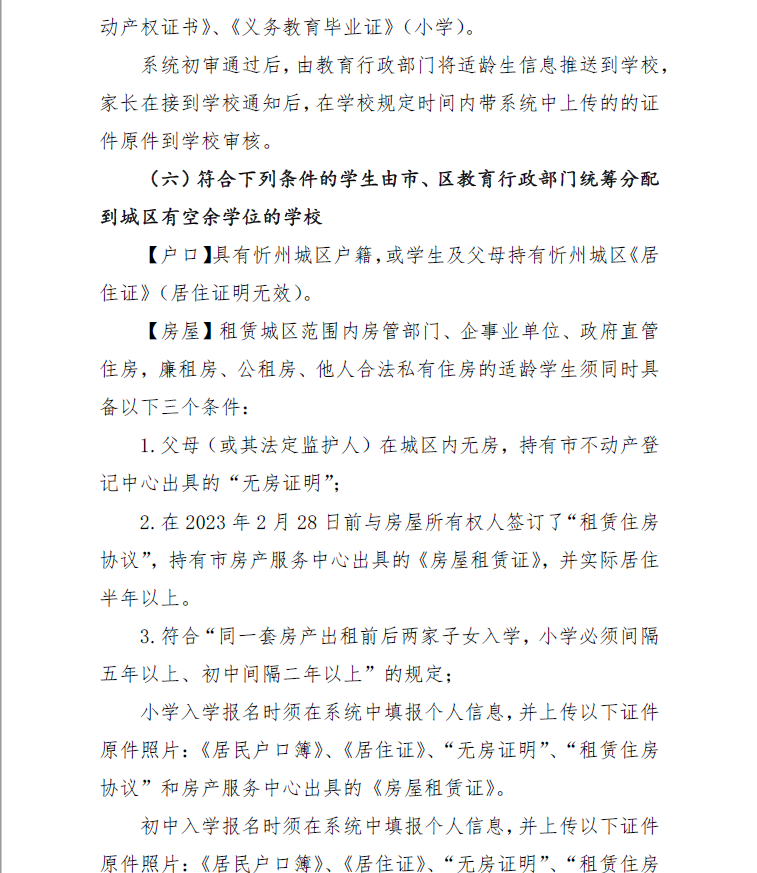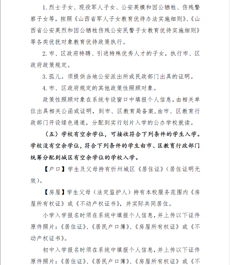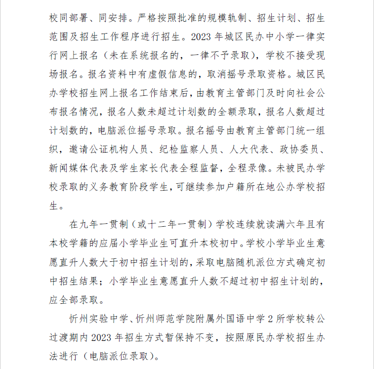 (四)8月8日,忻州市教育局統(tǒng)一組織忻州市北方中學(xué)、忻州現(xiàn)代雙語學(xué)校、忻州市康樂小學(xué)、忻州師范學(xué)院附屬外國語中學(xué)、忻州實(shí)驗(yàn)中學(xué)五所學(xué)校進(jìn)行搖號(hào),并及時(shí)公布錄取結(jié)果。8月9日至10日,辦理入學(xué)手續(xù)。