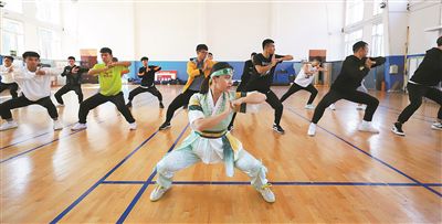 圖為延邊大學(xué)體育學(xué)院學(xué)生在練習(xí)武術(shù)。 新華社記者 雒圓攝
