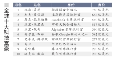京華時(shí)報(bào)訊(記者胡笑紅)福布斯10日發(fā)布了第二屆科技行業(yè)百富榜顯示,全球排名前100的科技富豪合并財(cái)富達(dá)到8920億美元,較去年增長(zhǎng)6%。中國(guó)的馬云、馬化騰躋身榜單前十。
