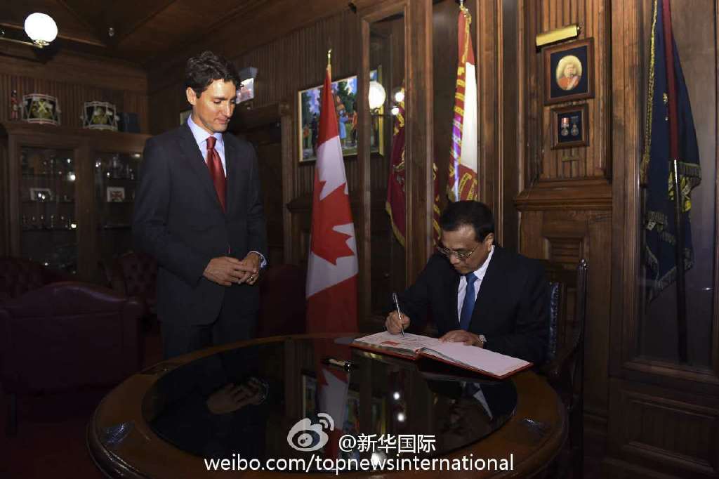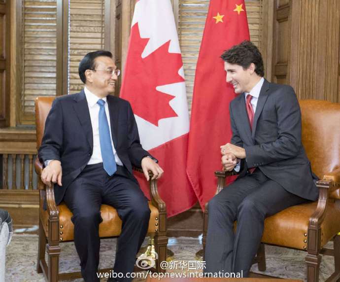 新華網(wǎng)北京9月23日電 當(dāng)?shù)貢r間22日,李克強總理與加拿大總理特魯多舉行會談,確認(rèn)正式啟動中加總理年度對話機制。會談中,兩國總理就中加關(guān)系和共同關(guān)心的地區(qū)國際問題進(jìn)行了廣泛深入的交談。這是李克強和特魯多在不到一個月時間里第二次會晤。特魯多本月初剛剛訪華。(據(jù)新華社“新華國際”微博報道)