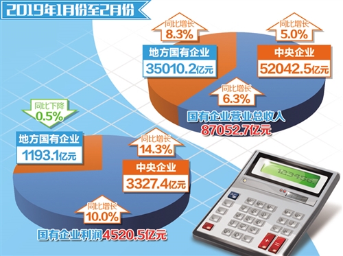 數(shù)據(jù)顯示,今年1月份至2月份,中央企業(yè)實現(xiàn)利潤3327.4億元,同比增長14.3%;地方國有企業(yè)實現(xiàn)利潤1193.1億元,同比下降0.5%。
