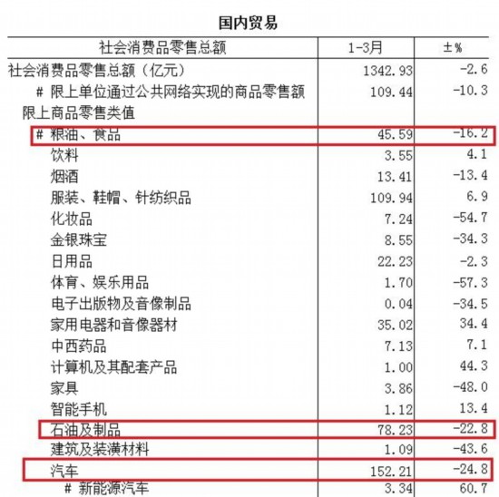 中新經(jīng)緯客戶端發(fā)現(xiàn),一季度,天津在汽車、石油及制品、糧油食品幾類權(quán)重較大的商品品類上出現(xiàn)下滑,影響了天津的社會消費品零售總額的增長。