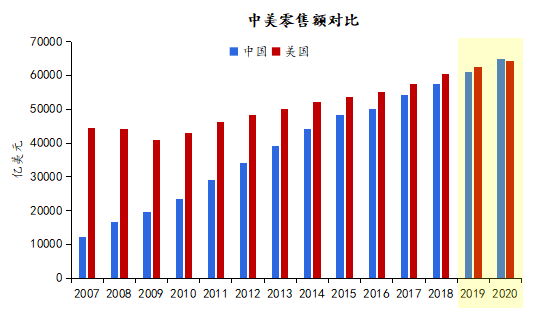 圖表2 中國(guó)零售額有望趕超美國(guó),成為世界第一
