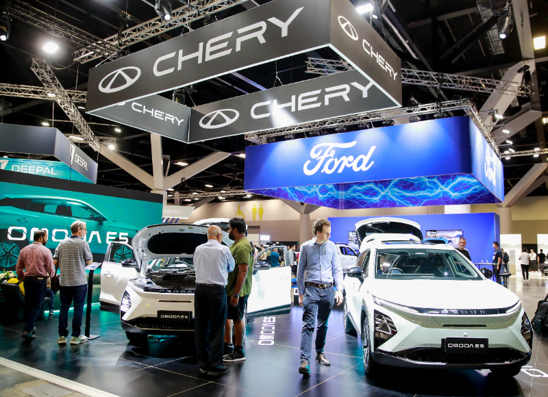 (資料圖)11月8日,在澳大利亞悉尼國際會議中心,觀眾在奇瑞汽車展臺參觀。新華社記者 馬平 攝