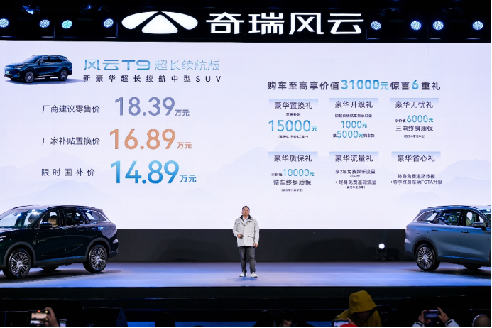 央廣網北京11月19日消息(記者姜鵬)11月18日,奇瑞風云T9超長續(xù)航版于天津泰達航母主題公園上市,官方指導價18.39萬元,并帶來至高享價值31000元的驚喜6重禮,廠家補貼置換價為16.89萬元,限時國補價14.89萬元。