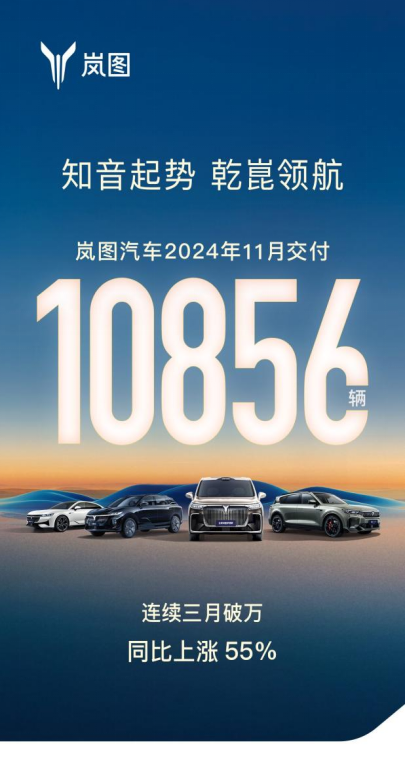 | 連續(xù)3月破萬(wàn),同比增長(zhǎng)55% 嵐圖汽車(chē)11月再傳捷報(bào) |