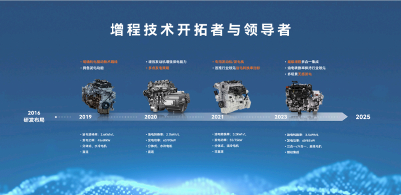 2019年,賽力斯實現(xiàn)增程器的量產(chǎn),推出“油電轉(zhuǎn)換率”概念,并且其油電轉(zhuǎn)換效率、功率表現(xiàn)優(yōu)異。2021年,賽力斯突破增程系統(tǒng)效率桎梏,“油電轉(zhuǎn)換率”再次提升。