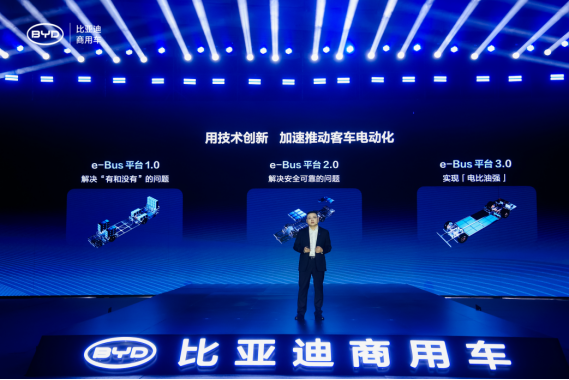 比亞迪自2008年啟動新能源商用車的研發(fā),17年來,累計投入超140億,目前研發(fā)人員已超7000人。作為掌握“三電一芯”新能源核心技術、且長期專注新能源商用車的企業(yè),e-Bus平臺歷經三次迭代,再次突破技術平臺限制,實現(xiàn)“電比油強”,進一步加速道路客運電動化轉型。