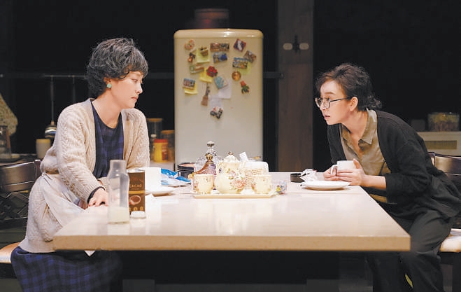 “《晚安,媽媽》沒(méi)有大的戲劇沖突,所有的矛盾都來(lái)自真實(shí)的生活,通過(guò)合情合理的人物關(guān)系和環(huán)環(huán)相扣的對(duì)話,去撥開日常生活之下翻滾的心?!碧茻钚稳?,這是一部沒(méi)有借助所謂的“手段”的作品,100分鐘的演出真誠(chéng)動(dòng)人,靠的是扎實(shí)的舞臺(tái)實(shí)景和兩位演員牽動(dòng)肺腑的表演——冰箱里塞滿食物,杯子盛著冒白氣的熱巧克力,水龍頭能擰出自來(lái)水,沒(méi)有刻意的音樂(lè)和效果,整座舞臺(tái)如同真實(shí)生活的切面。演員需要在“做家務(wù)”的同時(shí)進(jìn)行快節(jié)奏、高密度的對(duì)話,“手上不能停,但也不能攪戲,比如母女倆換沙發(fā)套的那一段,我們就練了很久很久?!碧茻钫f(shuō)。