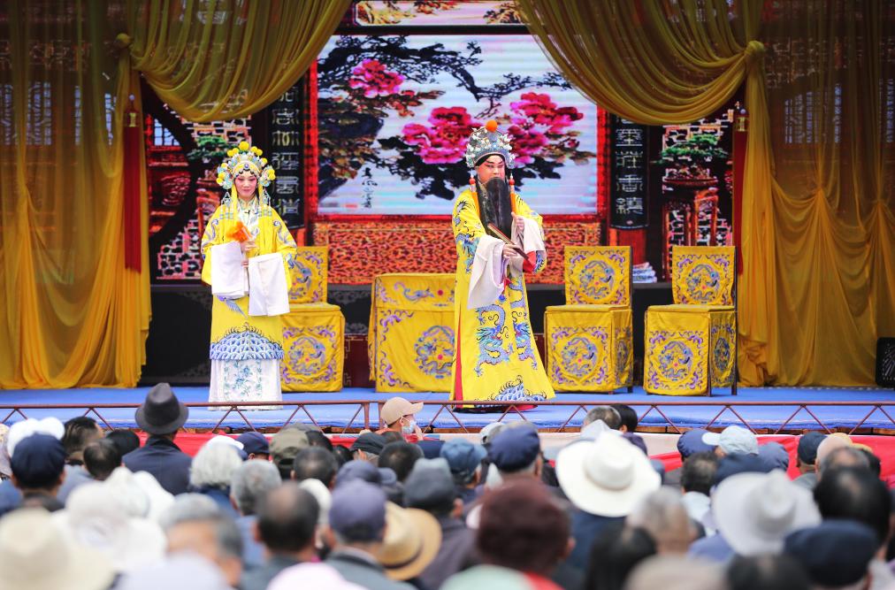 演員在甘肅省定西市體育公園演唱秦腔經典傳統(tǒng)劇《周仁回府》(9月21日攝)。新華社發(fā)(王克賢攝)