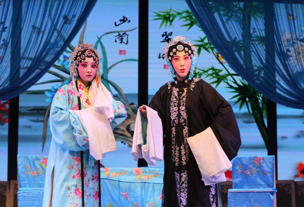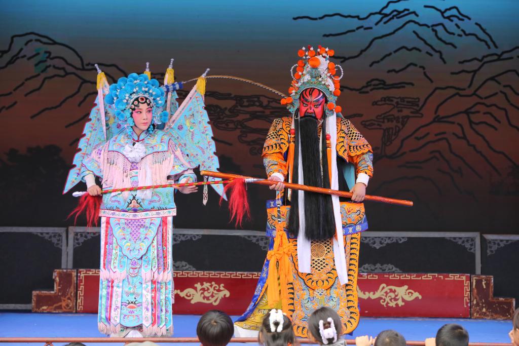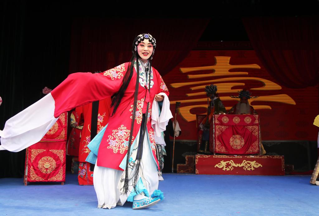 演員在甘肅省定西市體育公園演唱秦腔經典傳統(tǒng)劇《打金枝》(9月19日攝)。新華社發(fā)(王克賢攝)