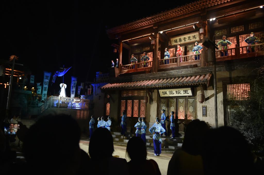 位于河南省中牟縣的建業(yè)電影小鎮(zhèn)以電影主題演藝為核心,打造集電影互動(dòng)游樂(lè)、電影文化體驗(yàn)、電影主題客棧、民俗和非遺體驗(yàn)等內(nèi)容于一體的沉浸式文旅項(xiàng)目。夜晚時(shí)分,游人在小鎮(zhèn)中穿梭游覽,觀賞各類實(shí)景演出,體驗(yàn)妙趣橫生的電影情境之旅。