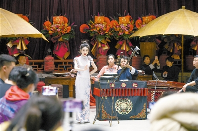 出生于1996年的小馬是位來(lái)自新疆的姑娘,到天津上大學(xué)以前幾乎沒(méi)聽(tīng)過(guò)鼓曲,來(lái)天津一下子陶醉在曲藝之鄉(xiāng)的氛圍里?!爸奥?tīng)相聲,現(xiàn)在追鼓曲,雖說(shuō)追得比較佛系,但票務(wù)平臺(tái)上我也買成了黑鉆會(huì)員?!毙●R說(shuō)她還有個(gè)大學(xué)同學(xué),因?yàn)橄矚g鼓曲,考進(jìn)了鼓曲社學(xué)習(xí),也許一兩年以后就能在臺(tái)上見(jiàn)到他。“學(xué)鼓曲難,我覺(jué)得當(dāng)鼓曲觀眾其實(shí)也不容易,”小馬表示這個(gè)“門檻”在鼓掌叫好的時(shí)機(jī)上,“鼓曲不像相聲,觀眾什么時(shí)候鼓掌,演員都能接上話,甚至發(fā)揮幾句。鼓曲聽(tīng)得明明很想鼓掌,可生怕時(shí)機(jī)不對(duì),打攪演員了,他就接不上了?!庇谑牵●R他們找到一個(gè)秘訣——看老觀眾叫好他們就跟著一起,慢慢地,似乎找到了點(diǎn)兒感覺(jué)。