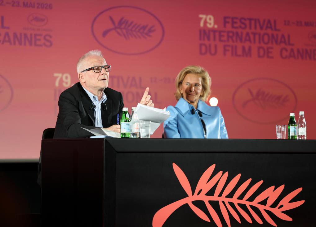 4月9日,戛納電影節(jié)主席伊麗絲·克諾布洛赫(右)與戛納電影節(jié)藝術總監(jiān)蒂埃里·弗雷莫出席在法國巴黎舉行的新聞發(fā)布會。新華社記者 鄔惠我 攝