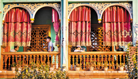 金秋時(shí)節(jié),新疆著名旅游景點(diǎn)——喀什古城景區(qū)游客日漸增多。自9月初新疆跨省市旅游全面開放以來(lái),喀什古城景區(qū)旅游復(fù)蘇呈現(xiàn)加速趨勢(shì)。 古城景區(qū)相繼推出民宿家訪、手工藝品制作、品嘗特色美食等一系列項(xiàng)目,吸引越來(lái)越多的游客前來(lái)感受古城的煙火氣。圖為9月22日,在喀什古城景區(qū),游客在“百年茶館”里品茶休息。 新華社記者 趙戈 攝