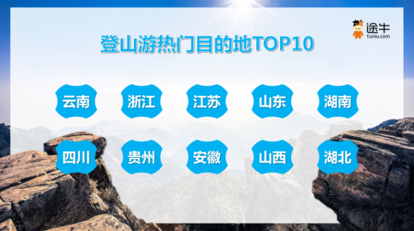 我國(guó)的名山高峰不勝枚舉,雄、險(xiǎn)、奇、靈、秀各具特色。數(shù)據(jù)顯示,在眾多登山游景區(qū)中,湖南天門(mén)山、安徽黃山、山西五臺(tái)山、山東泰山、陜西華山、河南老君山、貴州梵凈山、江西武功山、四川峨眉山、吉林長(zhǎng)白山等是途牛用戶(hù)更為熱門(mén)的選擇。