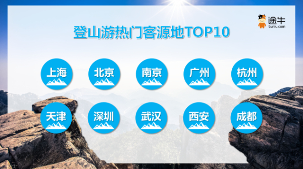途牛截至目前最新預(yù)訂數(shù)據(jù)顯示,2023年以來(lái),選擇登山游相關(guān)旅游產(chǎn)品的用戶(hù)出游人次占比達(dá)29%,是途牛用戶(hù)最熱衷的出游主題之一。其中,上海、北京、南京、廣州、杭州、天津、深圳、武漢、西安、成都等地用戶(hù)對(duì)登山游擁有更高的熱情。