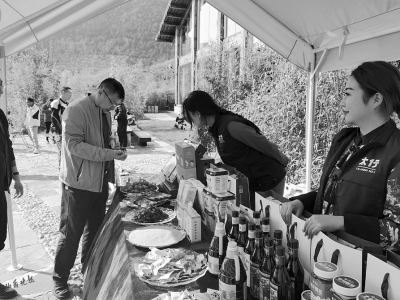 在旅途中,不斷有村落和觀景臺(tái)交替出現(xiàn)。觀景臺(tái)上視野開闊,空氣清新,吸引了不少游客,也有附近的村民擺攤賣貨。售賣商品琳瑯滿目,有小吃、飲料、文創(chuàng)旅游紀(jì)念品等,還有附近招攬游客入住民宿的店主。在觀景臺(tái)欣賞風(fēng)景的游客鄭川,來自河南駐馬店,就住在村民家的民宿中?!耙郧皝砺糜?,主要是奔著名氣大的王莽嶺,現(xiàn)在交通越來越方便,沿著旅游公路到處都是風(fēng)景!”鄭川說。