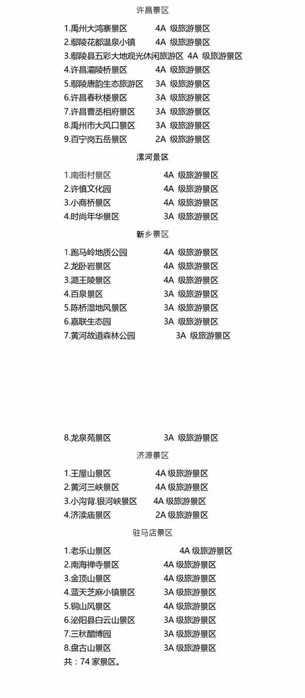 其中,鄭州的年票景區(qū)“十一”假期期間暫停使用,中原福塔景區(qū)在7個(gè)法定節(jié)假日期間暫停使用。平頂山、新鄉(xiāng)、焦作、許昌、濟(jì)源和駐馬店的年票景區(qū)在“五一”、“十一”和“春節(jié)”假期,年票暫停使用。如遇景區(qū)舉辦重大節(jié)慶活動(dòng),為保障旅游安全,避免發(fā)生旅游安全事故,活動(dòng)開始后、年票暫停使用時(shí)間不應(yīng)超過15天。未注明年票暫停使用時(shí)間的城市(漯河市),年票景區(qū)節(jié)假日期間,年票正常使用。