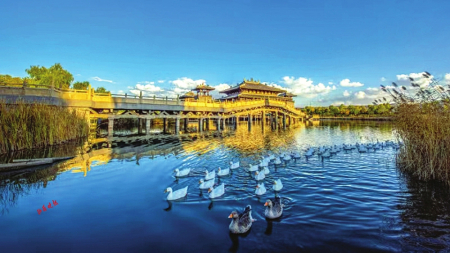 大同是山西的北大門?!逗谏裨挘何蚩铡?7個取景處中,大同占有5處,分別是云岡石窟、華嚴寺、懸空寺、善化寺、永安寺。夏末初秋,沐浴著清涼夏都的清風,走在大同的街頭,藍天澄澈、綠意蔥蘢、碧水盈波……這樣藍、綠、清交織的美景,繪就大同多彩生態(tài)畫卷。