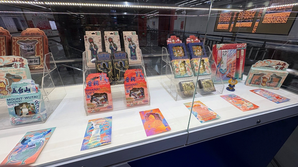 通達(dá)街站的展示柜里,總圍著不少人。蘇氏琉璃泛著琥珀般的光,山西民居磚雕帶著泥土的粗糲,有游客專門前來打卡,在社交媒體分享“山西的寶貝”。也會(huì)有各級非物質(zhì)文化遺產(chǎn)代表性傳承人“閃現(xiàn)”地鐵,隨著手指翻飛,紅紙片一會(huì)兒就變成了“山西古建”;核桃雕刻手工技人拿著刻刀,把山西窯洞微縮進(jìn)山西特產(chǎn)核桃里;依托地鐵的“流量出口”,中鐵電氣化局太原中鐵軌道公司打造的“晉物”文創(chuàng)品牌,涵蓋軌道文創(chuàng)、道地味道等5大類產(chǎn)品,乘客在開化寺站不僅可以線下購買,還能掃碼進(jìn)入線上商城,將山西的文化記憶與特色農(nóng)產(chǎn)品帶回家。