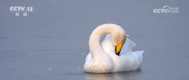 細心觀察還能發(fā)現(xiàn),鳥群中少數(shù)幾只的脖頸上佩戴著藍底白字的圓環(huán)。每年越冬季,科研人員會在保證安全的前提下進行環(huán)志工作,給一些大天鵝佩戴這樣的標識并安裝信號發(fā)射器,更好地追蹤研究它們的遷徙規(guī)律。這只編號為116的大天鵝是在2022年春天做的環(huán)志,2025年已是這位“老朋友”連續(xù)第4年飛回三門峽越冬。
