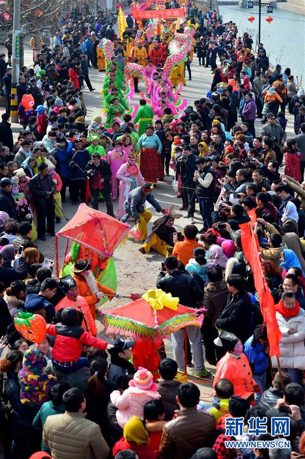 2月21日,社火隊在進行巡游拜年。當(dāng)日,有著千年歷史的傳統(tǒng)村落——山東省章丘市三德范村組織31個社火隊舉行社火巡游拜年活動,在元宵佳節(jié)來臨之際為鄉(xiāng)親們送祝福。新華社記者 郭緒雷攝