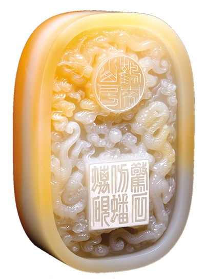 壽山石是一種以主產(chǎn)地命名的名貴印石。位于福建省福州市晉安區(qū)的壽山村,自古就以出產(chǎn)好石材著稱。元、明之際,壽山石雕刻印章開始興起。壽山石章鈕飾題材十分廣泛,包括動(dòng)物、人物、花果等,雕刻技法有圓雕、浮雕、淺浮雕以及陰刻等。