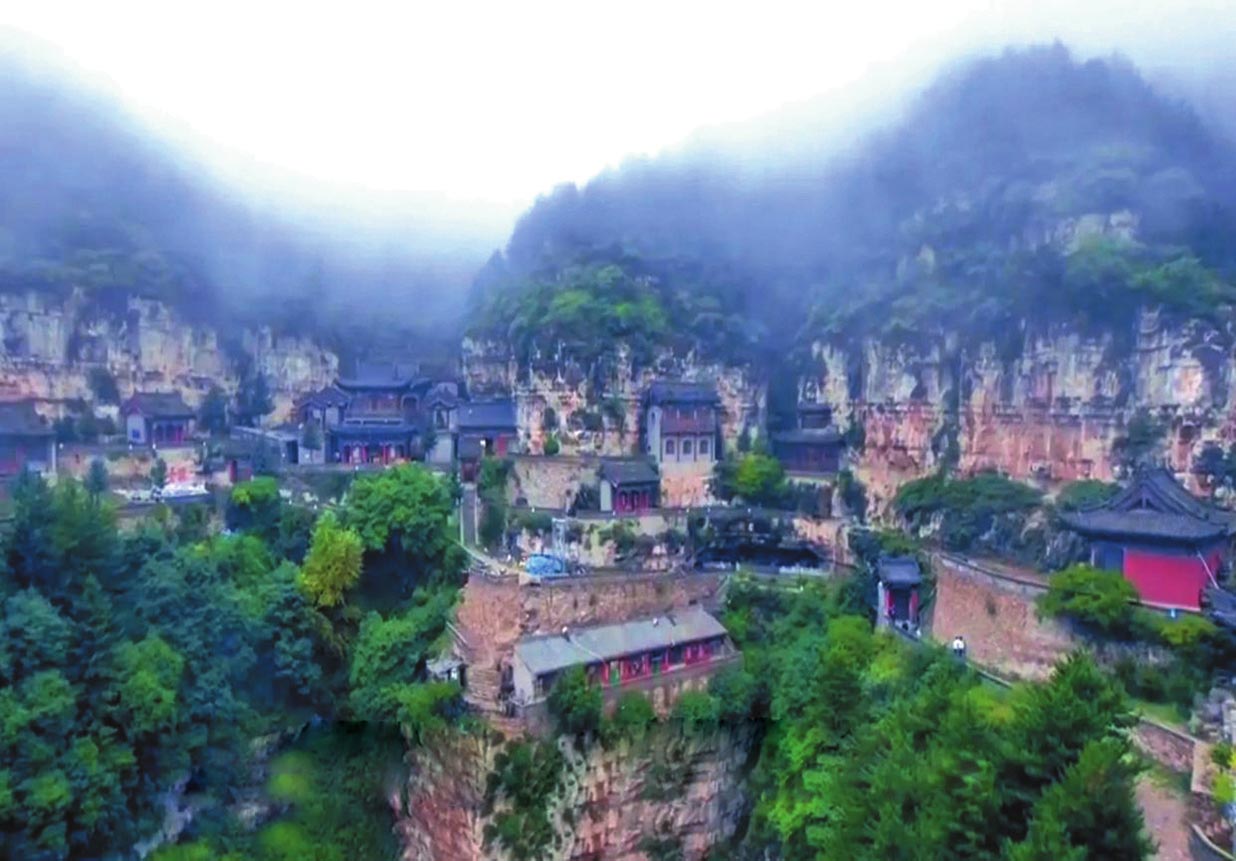《代州志》記載,趙杲觀創(chuàng)建于北魏時期,歷代均有修葺擴(kuò)建。其北洞是主體建筑部分,現(xiàn)存建筑物為明代重修,可分北洞與南洞兩大群落。北洞以道教為主,南洞以佛教為主。其中最有特色的兩處要算是北洞的“五層樓”和“三間閣”了。趙杲觀東側(cè)迎面山壁上,自然形成了龐大的三角形石縫,內(nèi)有天然石洞,景觀奇特。石縫上端,外建五層樓閣。依崖開鑿石洞,梁架結(jié)構(gòu)與崖石交接構(gòu)筑,建造精巧。三間閣內(nèi)設(shè)有鐵索,扶鐵索可攀援而上。箭閣外塑趙杲泥像,頭頂距石崖僅二指半,故舊稱“趙杲觀,離天二指半”。再往南,就是趙杲觀最險峻的景觀了。