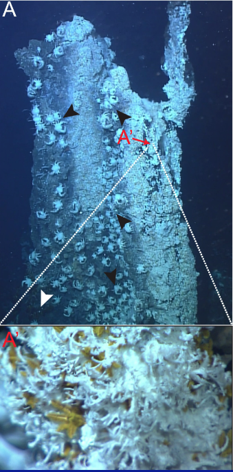 靠近熱液噴口的赫斯帕拉爾文氏蠕蟲(chóng)近景圖