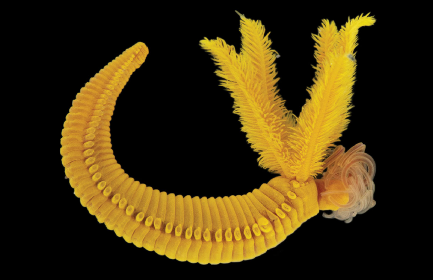 那么,為什么這種蠕蟲(chóng)卻沒(méi)有被毒死?這得從它那身明亮的黃色說(shuō)起。在深海的永恒黑暗中,大多數(shù)生物都是灰白色或深紅色,蠕蟲(chóng)這身黃色便十分顯眼。