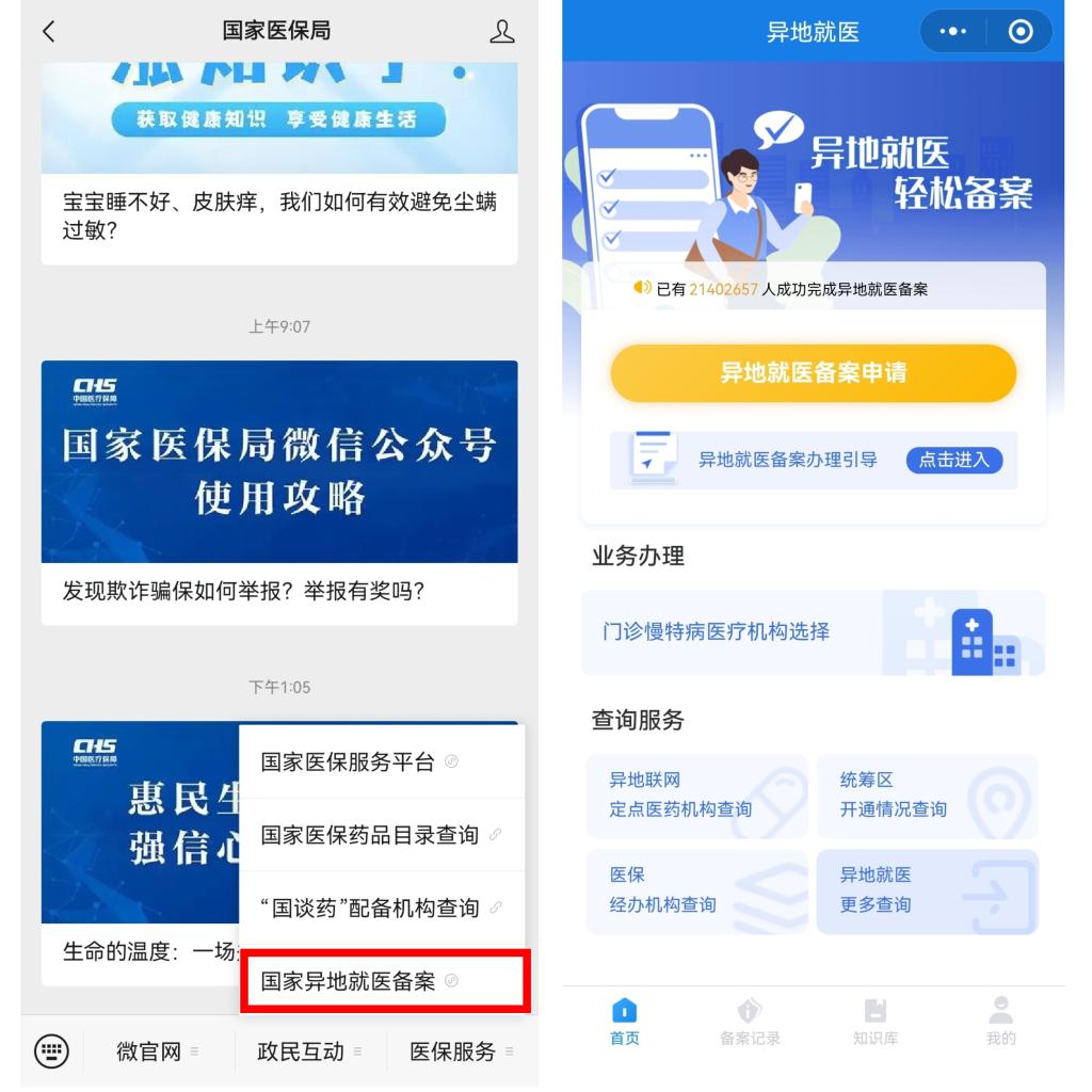跨省異地長期居住或跨省臨時外出就醫(yī)的參保人員,辦理異地就醫(yī)備案后,可以享受跨省異地就醫(yī)直接結(jié)算服務(wù)。記者從國家醫(yī)保局了解到,國家醫(yī)保局微信公眾號已開通異地就醫(yī)備案辦理功能。符合條件的參保人員只需簡單幾步操作,即可完成跨省異地就醫(yī)備案,并在異地就醫(yī)時實(shí)現(xiàn)直接結(jié)算。