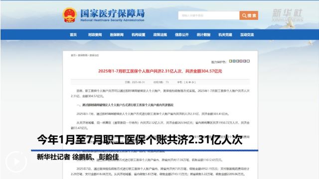 今年1月至7月職工醫(yī)保個賬共濟2.31億人次
