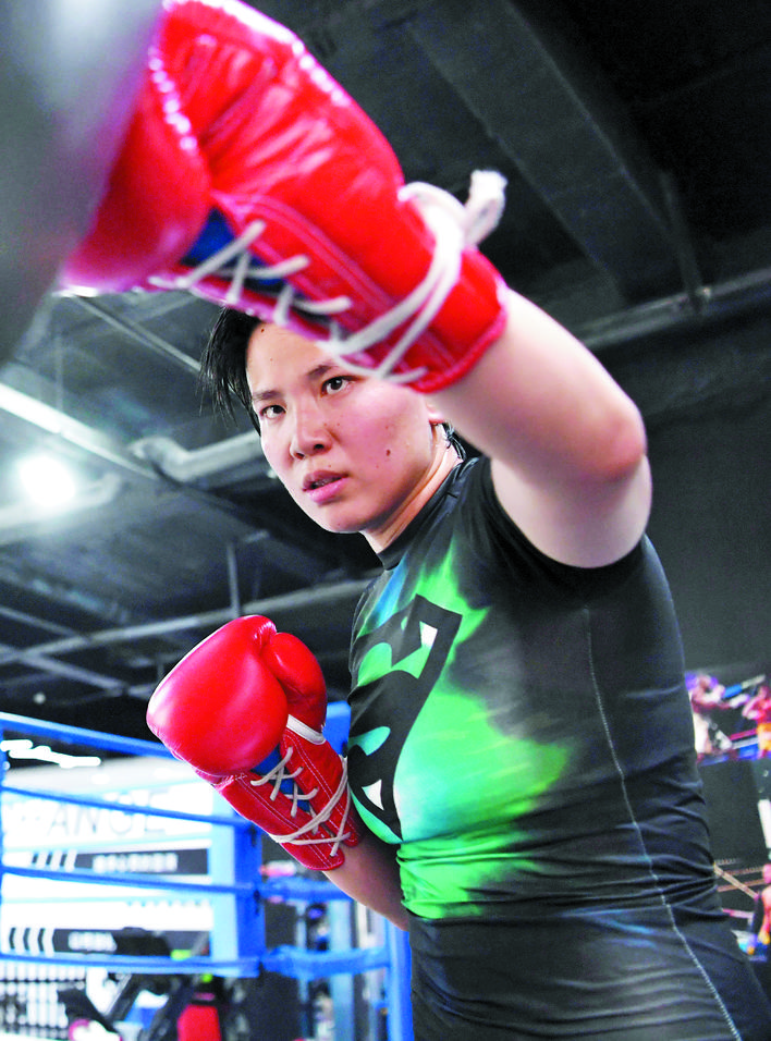 “面對(duì)的全是男拳手,剛開(kāi)始的時(shí)候經(jīng)常鼻青臉腫?!彪m然在力量、體能和抗擊打能力方面比較吃虧,但是要強(qiáng)的性格讓薛金玉選擇了堅(jiān)持,“喜歡容易堅(jiān)持難,我不能放棄,不能被男拳手小瞧。”