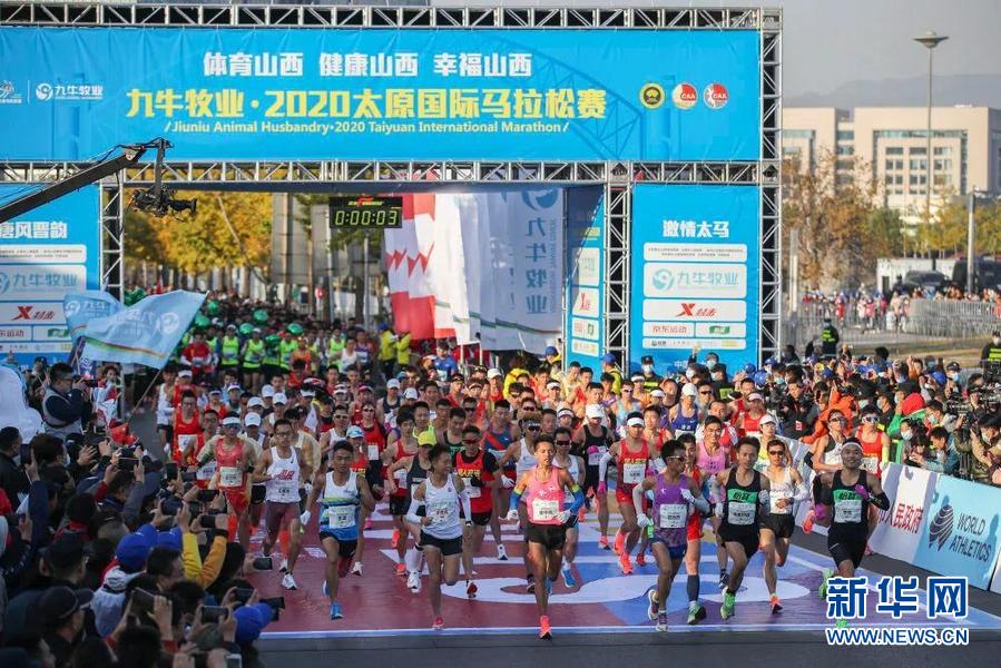 圖為2020太原馬拉松開跑瞬間。 新華社發(fā)