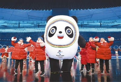 圖為演員與北京冬奧會吉祥物一起表演。新華社記者 許雅楠攝