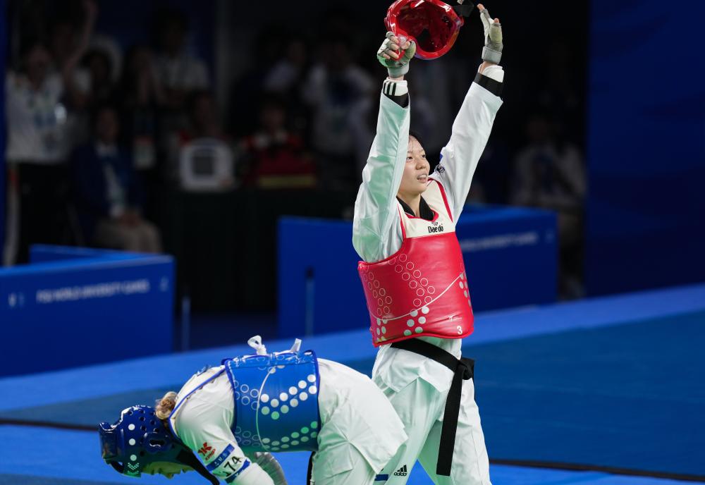 中國隊還在跆拳道項目上獲得兩枚金牌,宋潔逆轉奪得女子67公斤級冠軍,張凱則拿下男子80公斤級金牌。